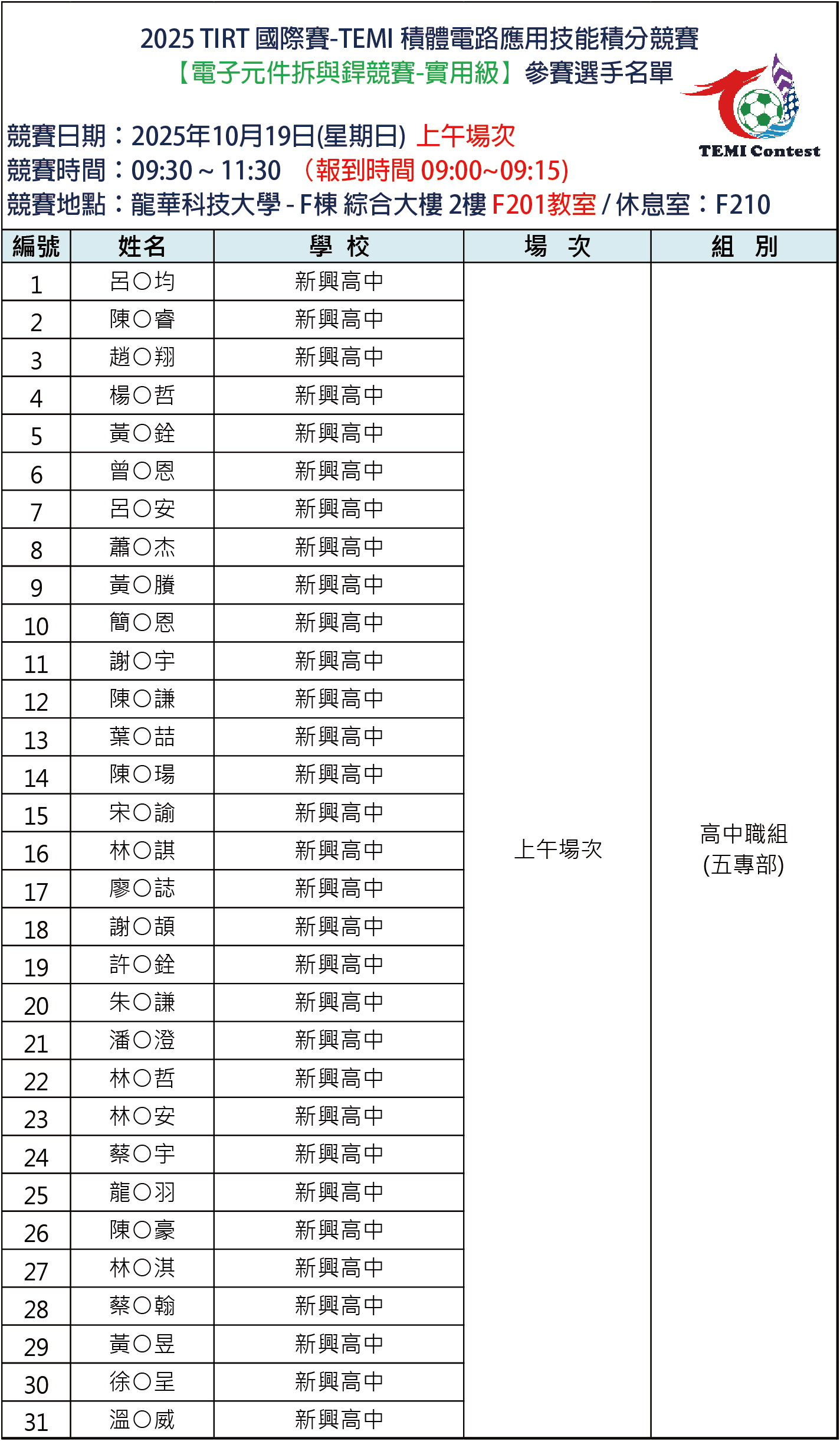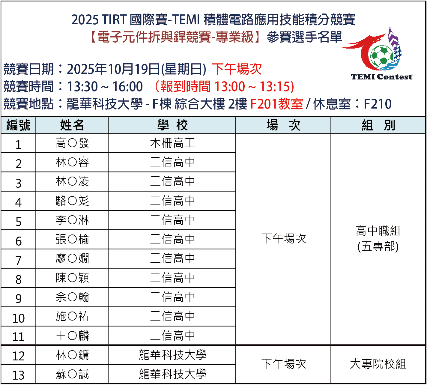 2025 TIRT 國際賽-TEMI 積體電路應用技能積分競賽