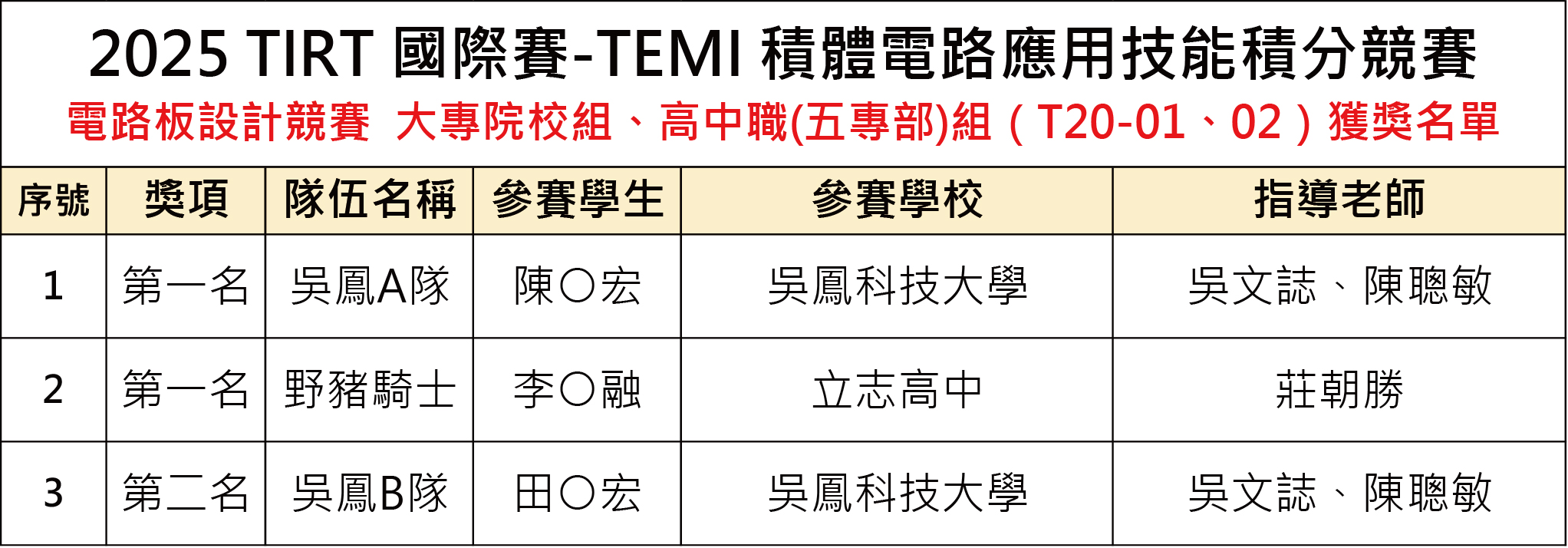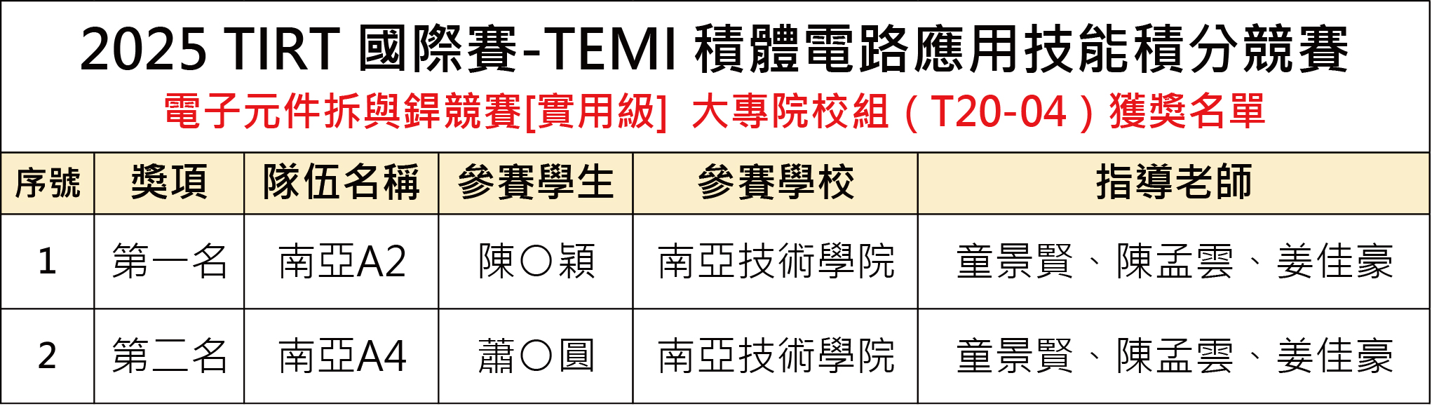 2025 TIRT國際賽-TEMI 積體電路應用技能積分競賽