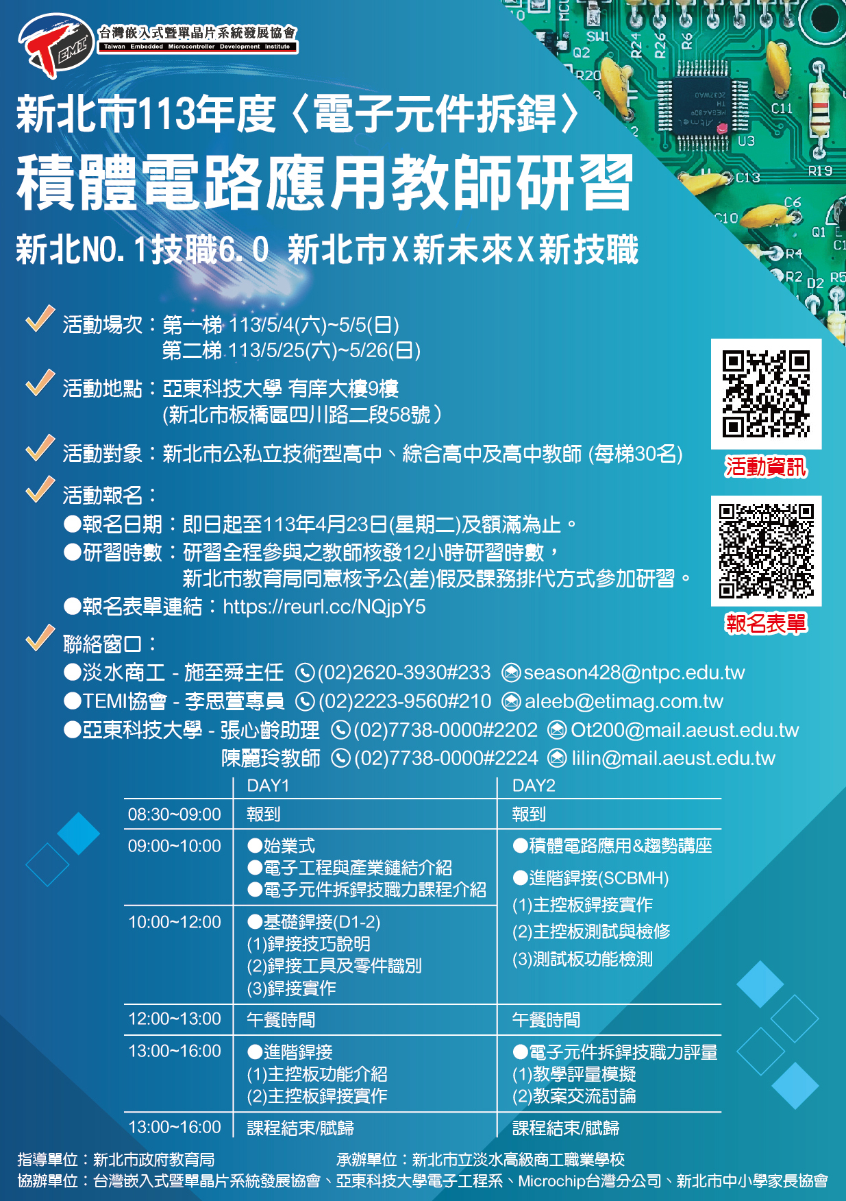 參加『新北市113年度積體電路應用教師研習-電子元件拆銲』活動